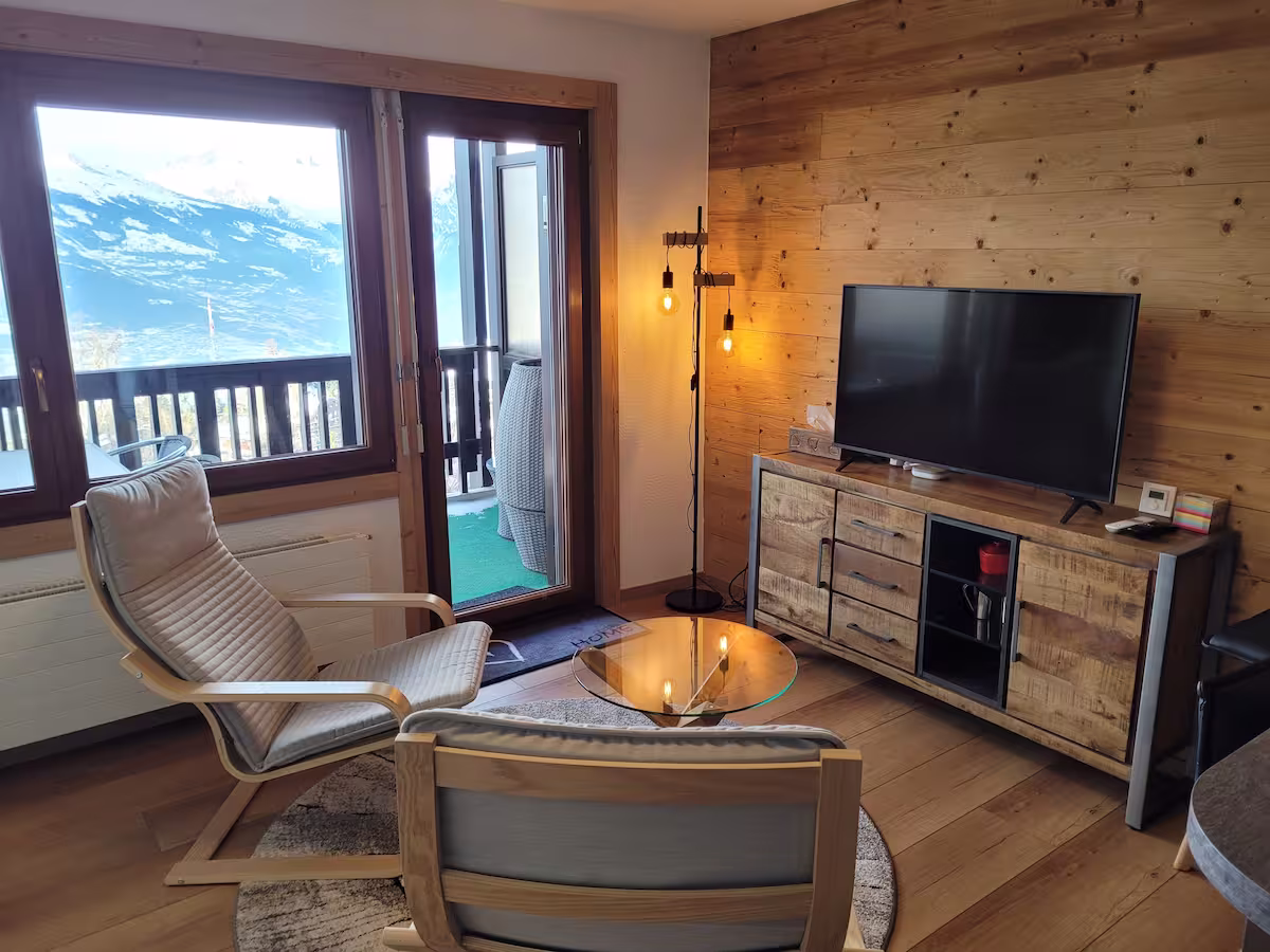 Entièrement rénové en 2021, ce studio allie modernité et élégance pour vous offrir un séjour d’exception. Depuis votre balcon privé, laissez-vous séduire par une vue panoramique et dégagée sur les sommets alpins.